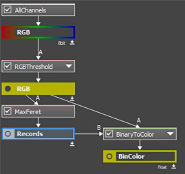 | Binaries to Color | Creates a new color layer out of any number of binay inputs. {1} pixels from the first connected layer have a value of 1, {1} pixels from the second connected layer have an intensity of 2, the third layer has an intensity of 3, etc. |